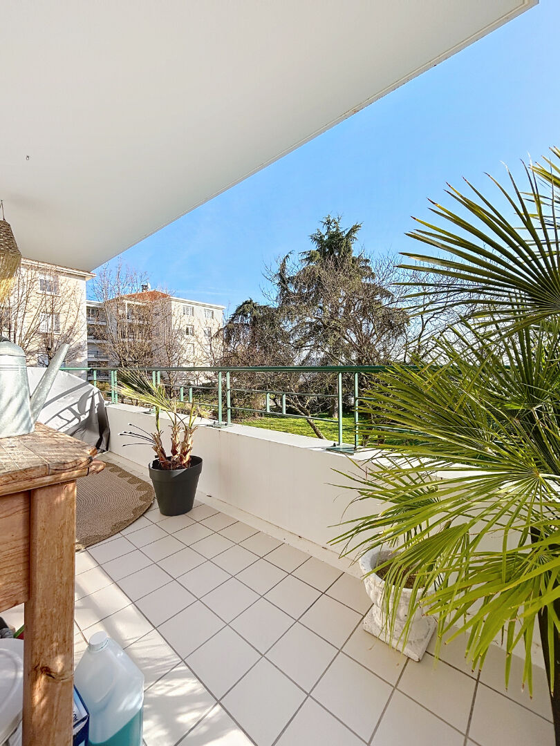 Appartement traversant avec balcon donnant au calme sur parc. Vendu avec un garage double fermé au sous-sol et une cave.